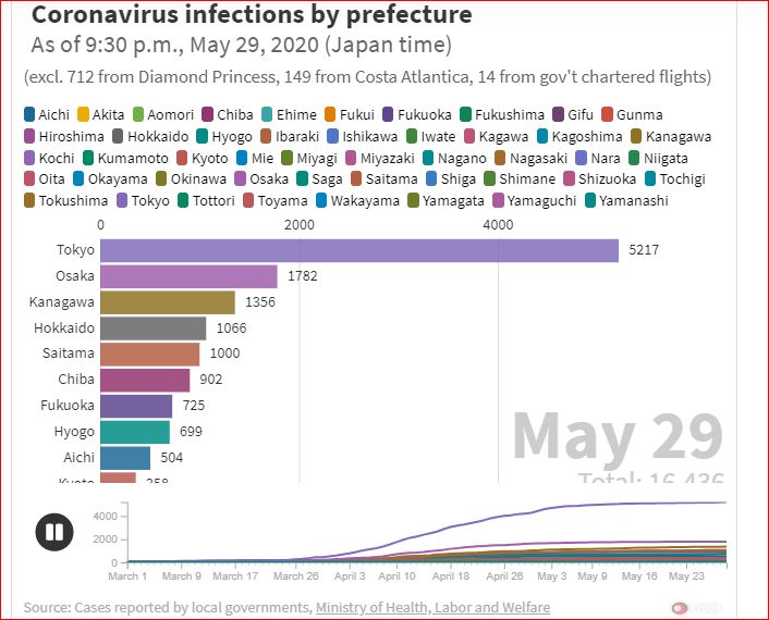 According to Facebook netizens' feedback, the city of Kitakyushu in Japan has reported 26 confirmed covid cases on 29 May 2020 while Tokyo has reported an increase of 22 confirmed covid cases on the same day.