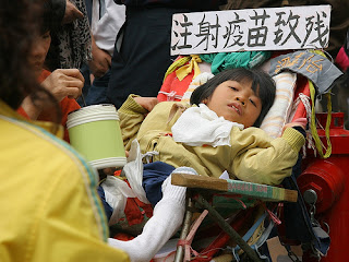 Image : In 2010, a group hospitalization of students injecting hepatitis B vaccine occurred in Guangdong, and the girl was disabled by the vaccine. (Epoch Times Reference Room)