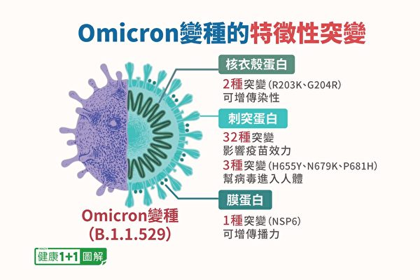 Image : The Omicron variant has two major mutations in the nucleocapsid protein, allowing the virus to replicate favorably. (Health 1+1 / Epoch Times)