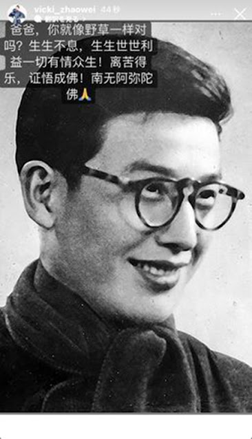 She also posted a photo of her father and wrote: "Dad, you are like weeds, right? You are endless, benefit all sentient beings, get rid of suffering and achieve happiness, and become a Buddha! Namo Amitabha!"